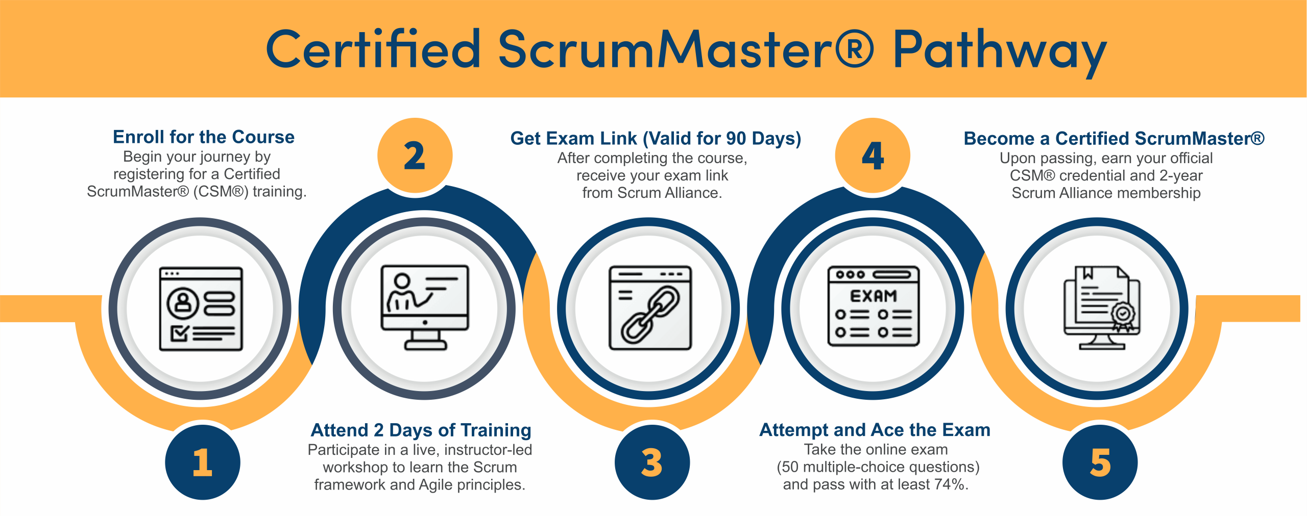 Whether you are new to Agile or already working in a Scrum environment, you can enroll without any prior certification or technical background.